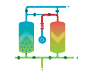 Os secadores de adsorção com consumo de ar zero do soprador são usados quando a aplicação de ar comprimido requer um ponto de orvalho de pressão abaixo de 0°. Os secadores dessecantes regenerativos consistem em dois vasos de pressão. Ambos os recipientes estão cheios de dessecante. Um recipiente está removendo a umidade do ar comprimido.