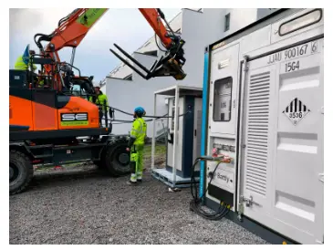 O Fast Charger da Atlas Copco funciona com o sistema de armazenamento de energia de contêiner ZBC para alimentar uma escavadeira elétrica