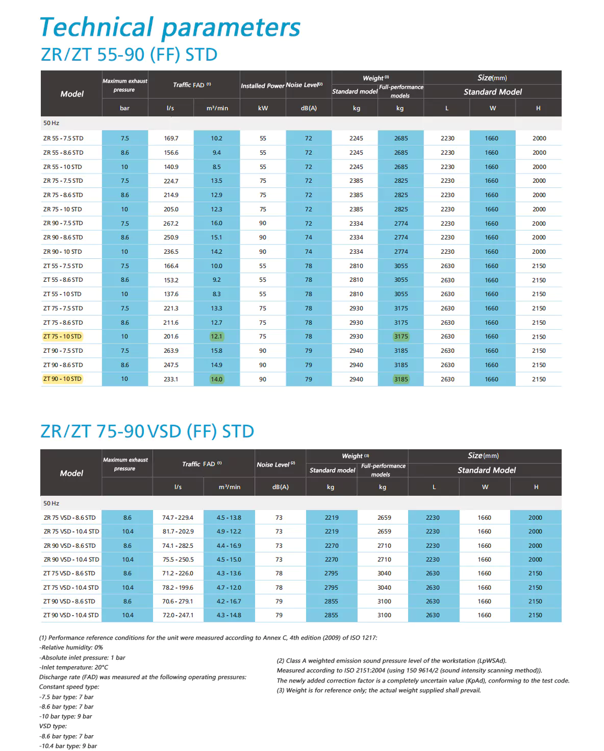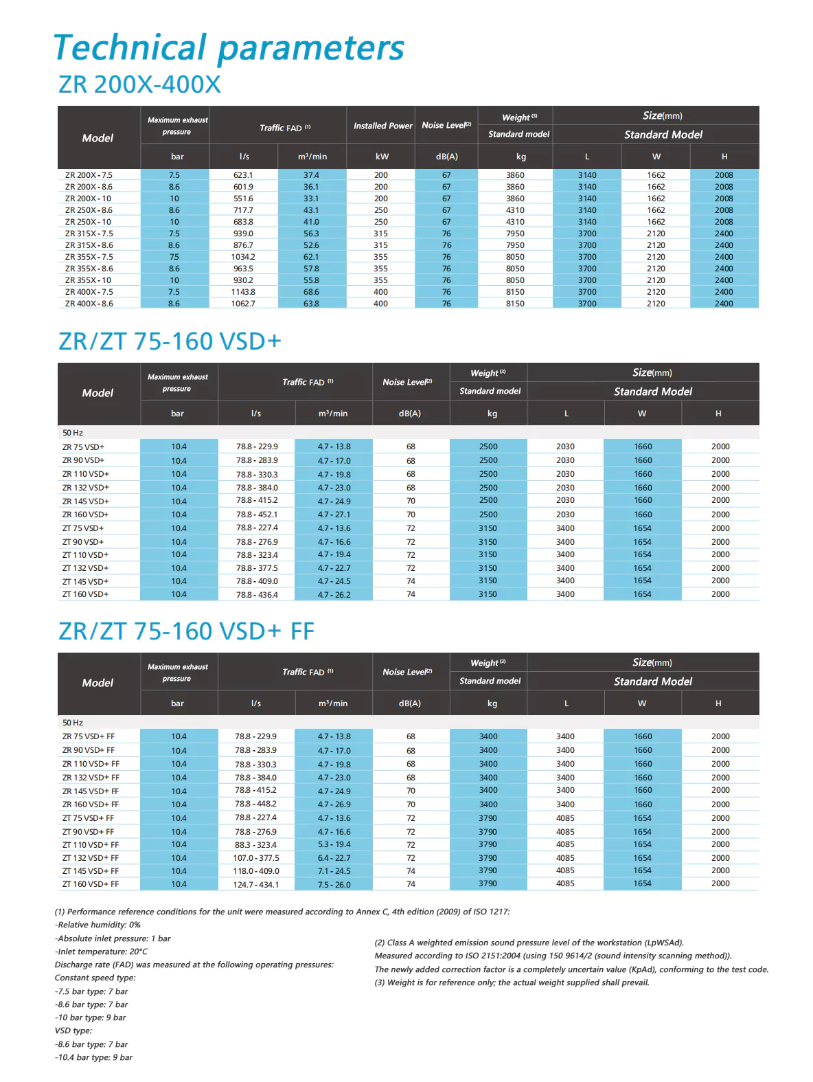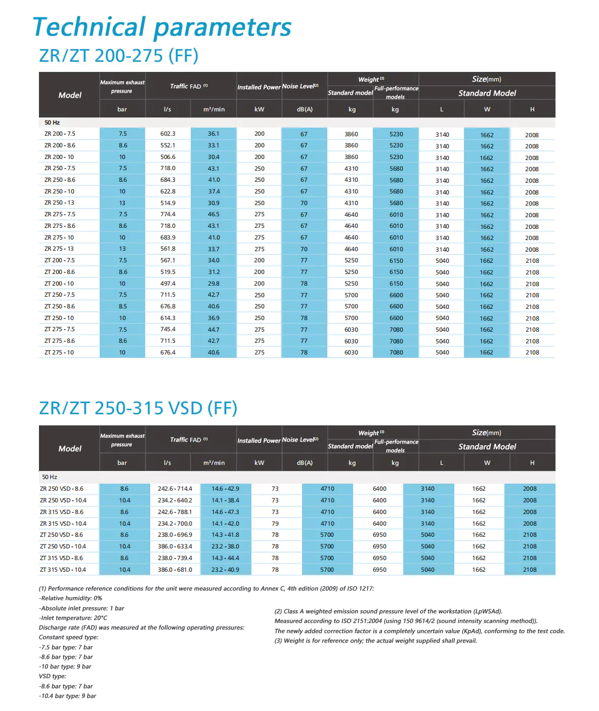 A Atlas Copco é conhecida por projetar e fabricar compressores de ar de parafuso isentos de óleo duráveis, e os compressores de parafuso da série ZR/ZT continuam essa tradição. Eles são a escolha acertada para indústrias com requisitos rigorosos de ar isento de óleo de alta qualidade, oferecendo alta confiabilidade, segurança e baixos custos de energia. Nós somos um fabricante e fornecedor profissional de compressores de ar na China. Bem-vindo a consultar e comprar.