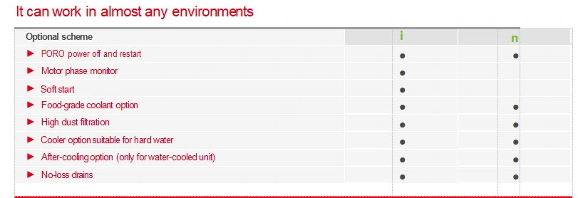 Nossos compressores oferecem refrigerantes de qualidade alimentar, alta filtragem de poeira, resfriadores de água dura e outras opções adaptadas a ambientes agressivos, que podem atender às suas diversas necessidades de aplicação.