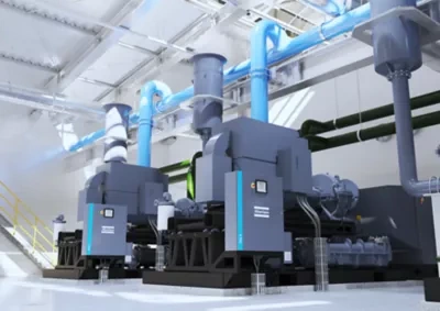 Além do design central energeticamente eficiente, nosso turbocompressor de estágio único pode ser combinado com uma unidade de recuperação de energia e um controlador central e/ou de unidade para reduzir ainda mais a pegada de carbono do seu processo de produção: