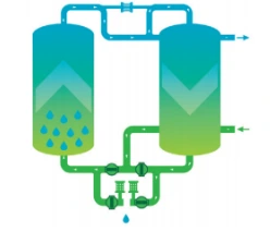 Enquanto uma torre está em modo de adsorção, a outra está em modo de regeneração. O gás de regeneração requer uma certa proporção de ar comprimido acabado.
